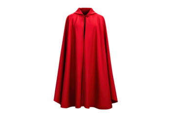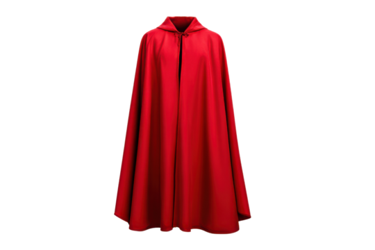 Full length red cape with hood and tie closure against black background cloak, Isolated On White Background, Png Transparent