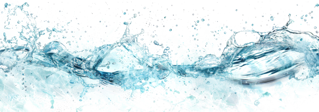 Graceful blue water splashing in crown shape, creating dynamic droplets against a transparent background, evoking freshness and purity