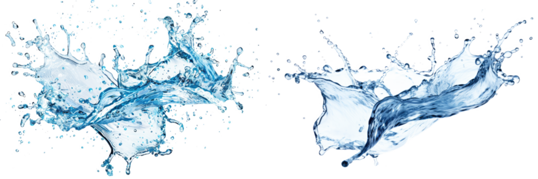 water splash isolated on white,Water splashes and drops isolated on transparent background. Abstract background with blue water wave,png
