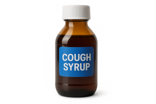 Young man coughing into his fist isolated on transparent background, demonstrating symptoms of a cold, flu, or other respiratory illness, studio shot