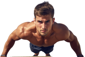 young athletic man playing sports It conveys strength. and fluency ,Isolated on a transparent background.