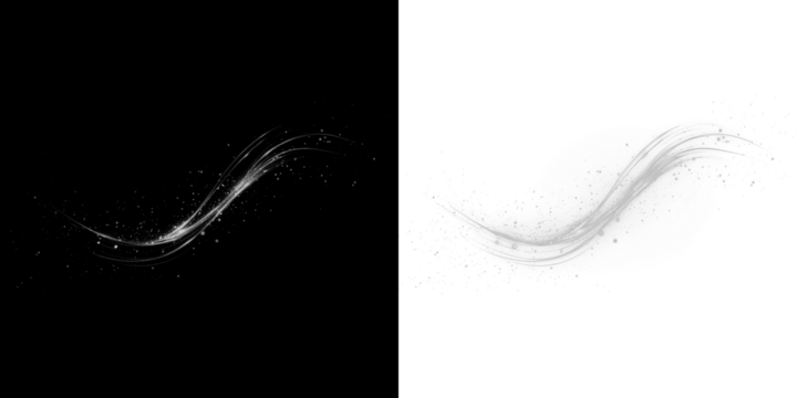 Abstract swirl design with sparkling elements on contrasting black and white backgrounds, showcasing fluid motion and elegance, perfect for creative projects and digital overlays