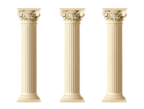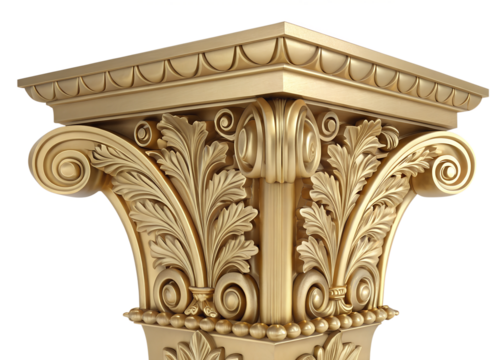 Antique Greek column sculpture isolated on white background, representing ancient art and culture, featuring elements of stone and brass decoration