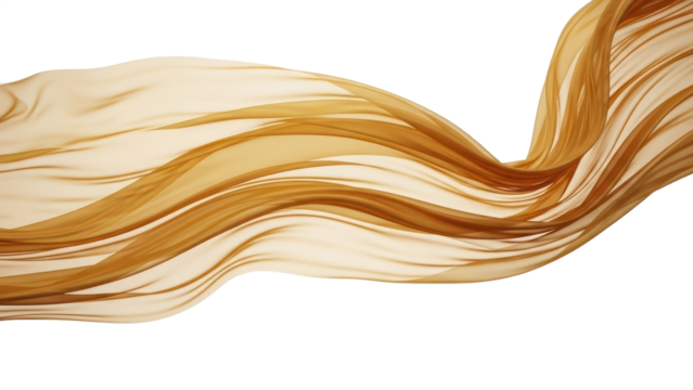 Flowing golden satin fabric waving in elegant curved motion, isolated on transparent background