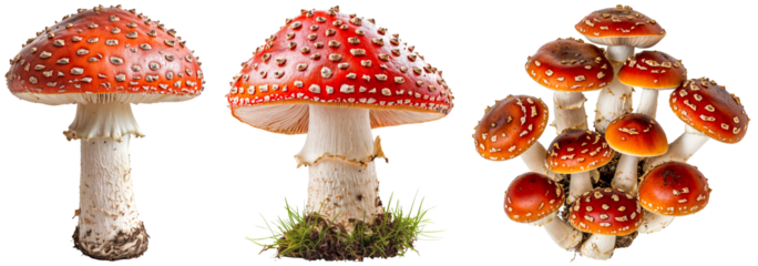 Set of  Red Amanita Mushrooms on white background isolated on transparent background