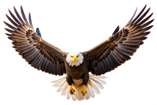 Majestic bald eagle soaring with wings spread isolated on transparent background