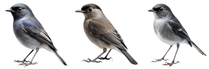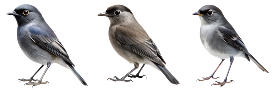 Set of A bird standing Grey and Black Bird isolated on a transparent background