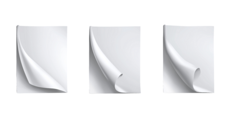 Three White Paper Sheets with Curled Corners on Black isolated on a transparent background