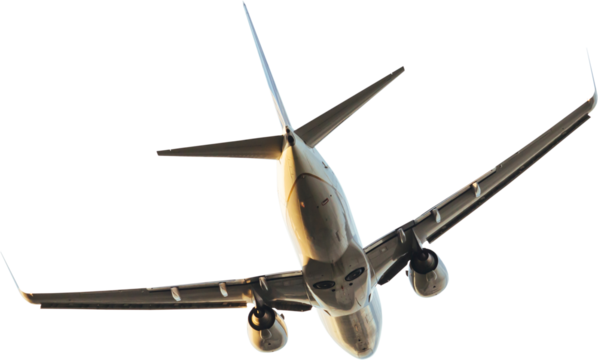 Underside view of airplane on transparent background for modern design