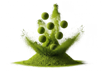 A bowl of rounded chocolate cereal balls with milk, advertising concept, isolated on transparent background
