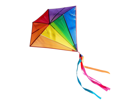 Isolated Colorful Kite with Ribbons Flying in the Wind