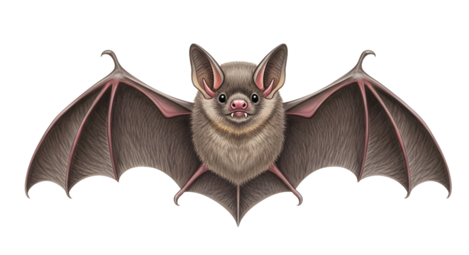 Close-up illustration of a flying brown bat with outstretched wings, perfect for wildlife and Halloween themes
