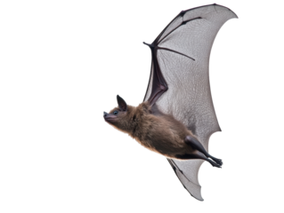 Isolated depiction of a brown bat in flight with outstretched wings, isolated transparent background