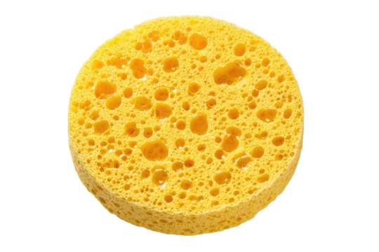 Close-up of a round yellow sponge, showing its porous texture