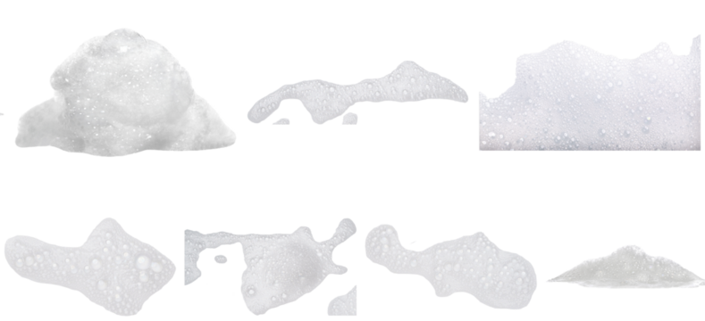 White Soap Foam Splashes on transparent background