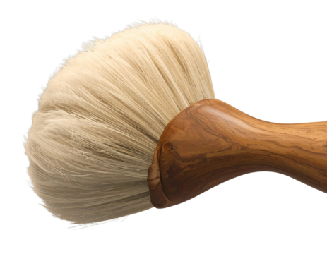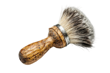 Shaving brush with wooden handle and badger hair, isolated on transparent background