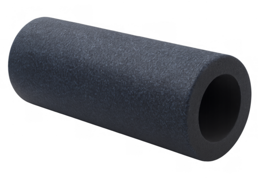 A foam roller with a textured surface, isolated transparent, used for muscle massage and physical therapy