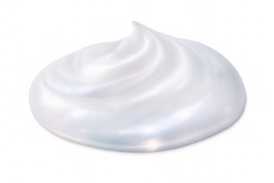 Swirling white cosmetic cream drop on a transparent background, depicting beauty, skincare, and hygiene products