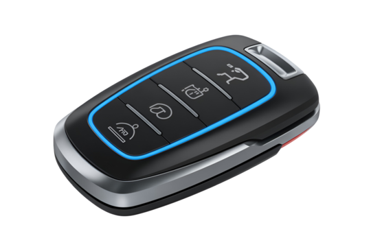 Modern car key fob with blue accent isolated on transparent background