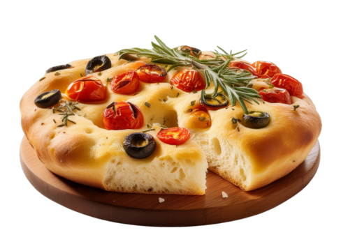 Freshly baked focaccia bread bakery food isolated on transparent background