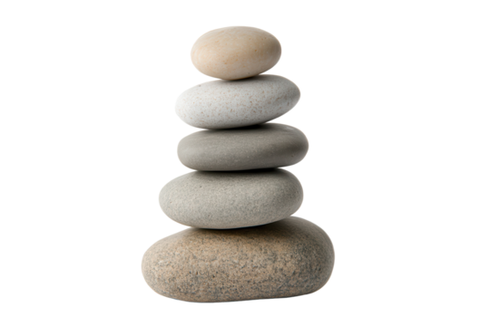 Stacked zen stones creating a tranquil focal point isolated on a transparent background showcasing balance and serenity in simple design