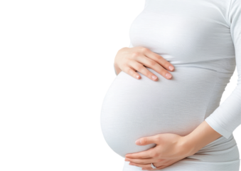 PNG A close-up of a pregnant woman gently cradling her baby bump, symbolizing love, anticipation, and the journey of motherhood.