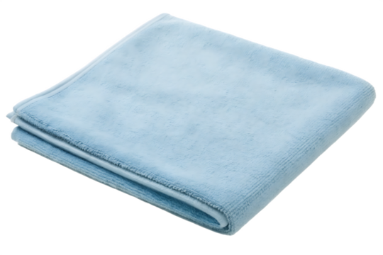 light blue microfiber cloth folded neatly showcas isolated on white background PNG , AI GENERATED