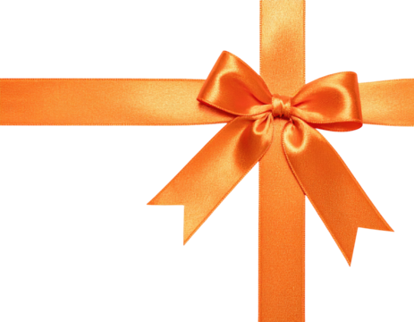 Close-up of a cross of orange ribbon, tied in a bow against a black background