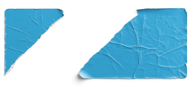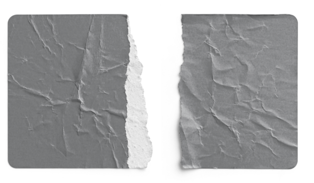 Torn Grey Paper Sticker Split into Two Halves isolated on transparent background