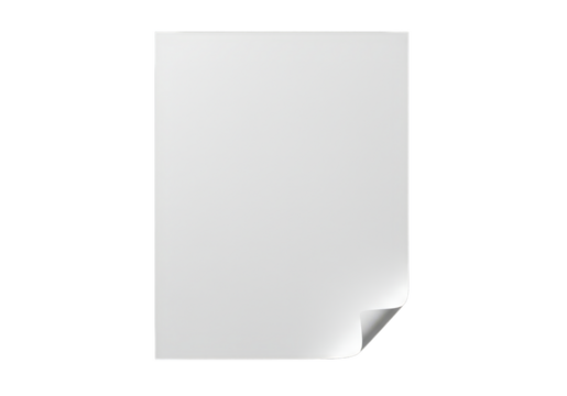 Crisp white paper sheet with folded corner, showcasing subtle shadows and minimalist design on transparent background