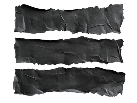 Black torn paper on a transparent background, ideal for design projects, scrapbooking, or artistic concepts.