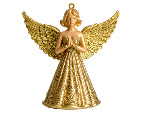 A shimmering golden angel figurine with folded hands