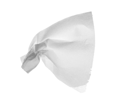 Crumpled and torn folded paper towel, disposable isolated on white, clipping path