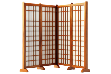 Wooden shoji screen isolated on transparent background for interior design.