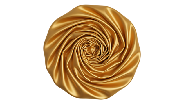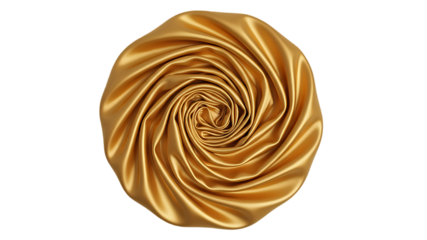 A swirling golden silk fabric texture with soft folds and highlights on transparent background