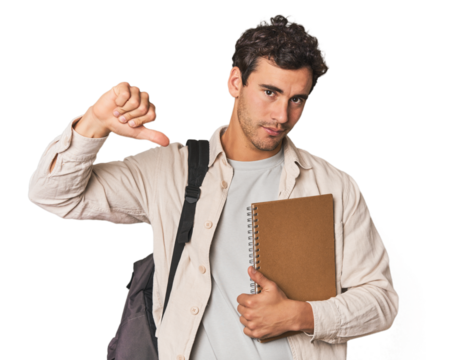 Young caucasian student man isolated feels proud and self confident, example to follow.