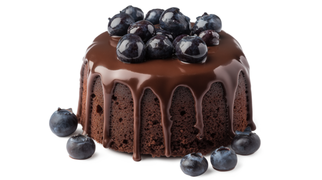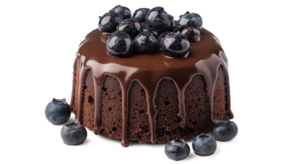mini chocolate fondant blueberry cake isolated on a white background