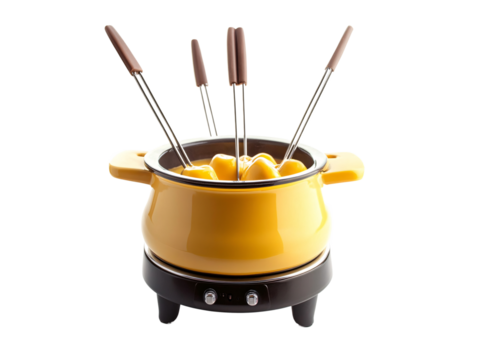 Fondue Cheese Pot with transparent background image asset, closeup view.