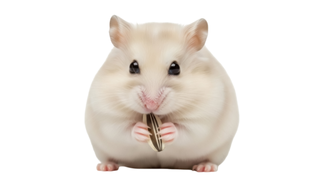 Adorable hamster eating a sunflower seed PNG isolated on transparent background, cute pet rodent with food for animal and wildlife concepts