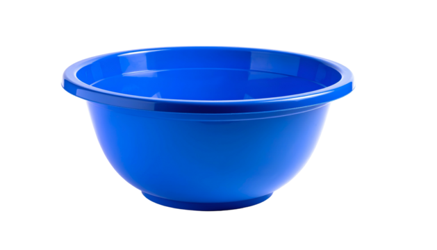 Isolated vibrant blue plastic bowl with a rounded design and a glossy finish