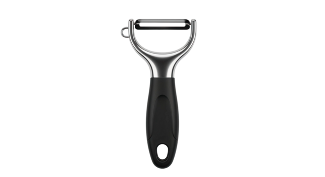 Silver vegetable peeler with black handle, cut out, stock png, isolated on transparent background