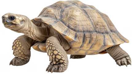 Isolated close-up studio capture of majestic tortoise with textured shell, powerful legs and detailed skin, wildlife study on a transparent background, PNG image, PNG file.