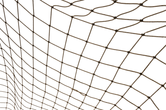 Torn Football or tennis net. Rope mesh on a white background close-up