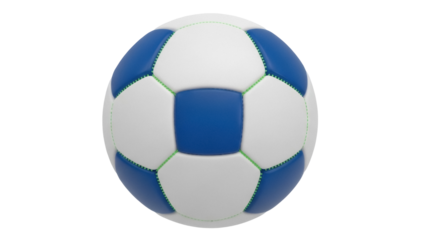 Blue and white soccer ball isolated PNG, classic football design on transparent background, sports equipment for games and recreational activities