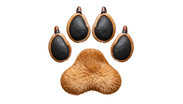Isolated paw print of a dog, showing soft brown pads and toes, cartoon style design icon