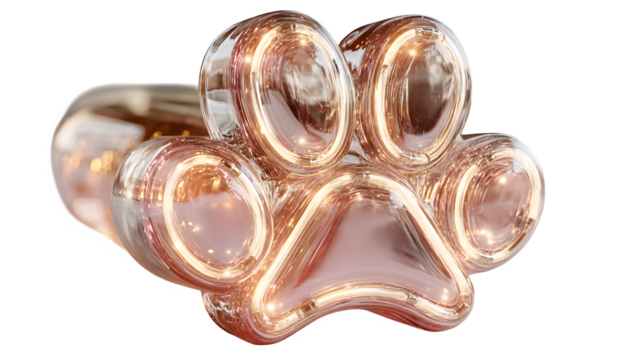 Isolated tan paw print with rounded pads on a black background in a rendered style image