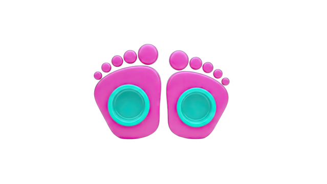 Pink Footprints with Teal Circles on White Background