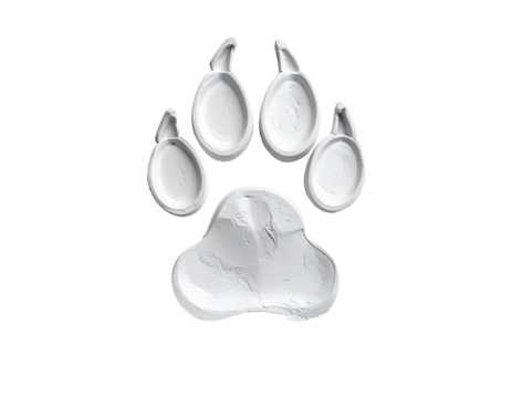 Pink clay paw print animal track on transparent background