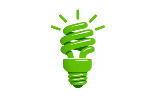 Green compact fluorescent light bulb glowing, visualizing energy saving, ecological innovation, and sustainable solutions on a transparent background