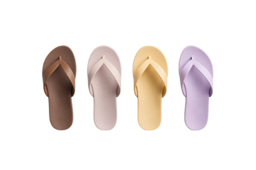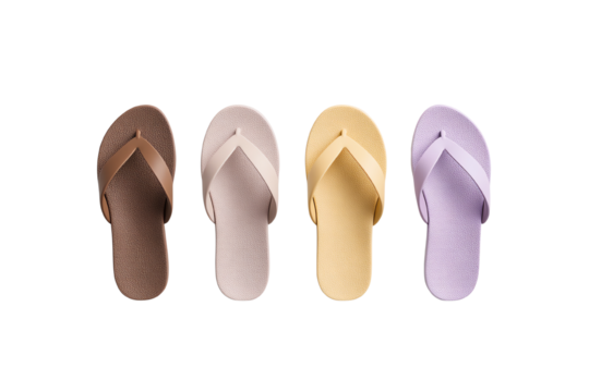 Colorful flip-flops arranged on a white isolated background, perfect for summer footwear and casual outings.